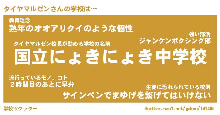 | 男性向けラノベタイトル風あだ名 | 『タイヤマルゼンの憂鬱』 |