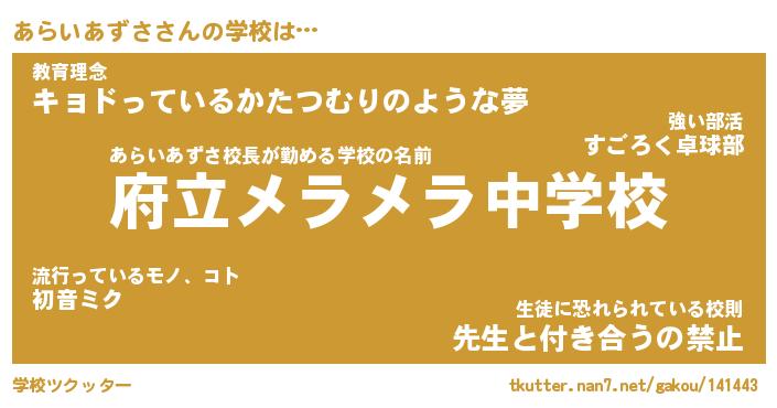 | 女子向けラノベタイトル風あだ名 | 『(仮)あらいあずさのやんごとなき事情』 |