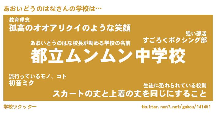 | 男性向けラノベタイトル風あだ名 | 『あおいどうのはなの憂鬱』 |