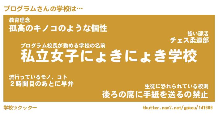 | 肩書あだ名 | 『プログラム店長』『プログラム国家主席』 |