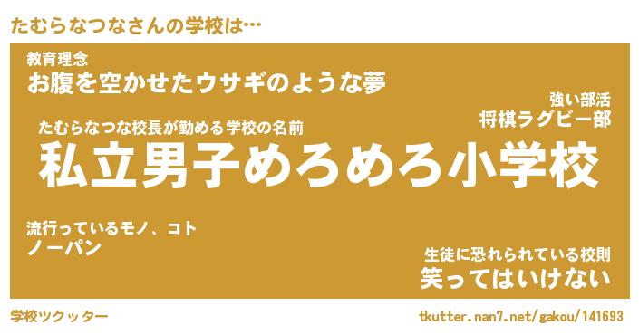 | 男性向けラノベタイトル風あだ名 | 『たむらなつなの憂鬱』 |