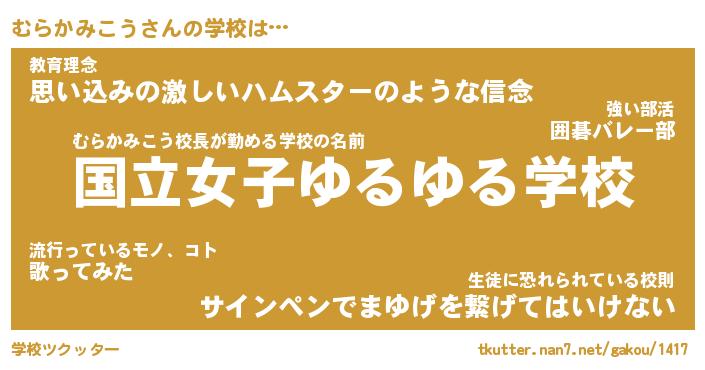 | 先生 | むらかみこう先生が勤める学校名『町立しゃくれ小学校』 |