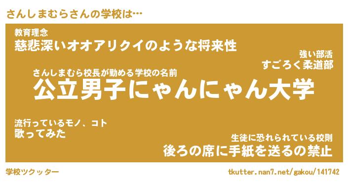 | ヒーロー風カッコイイあだ名 | 『スーパーサンシマムラ』『銀牙騎士サン』 |