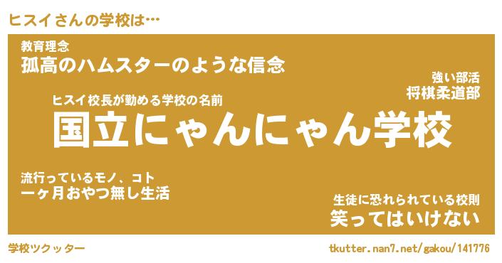 | ファンタジー風あだ名 | 『ヒスフェル』『エターナルヒスイー』 |