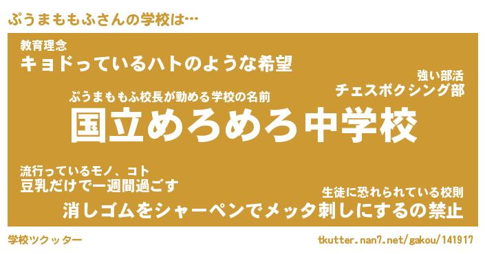 | 男性向けラノベタイトル風あだ名 | 『ぷうまももふの憂鬱』 |