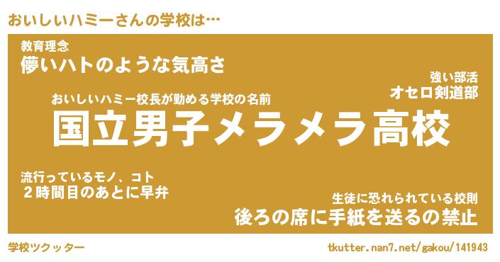 | 男性向けラノベタイトル風あだ名 | 『おいしいハミーの憂鬱』 |