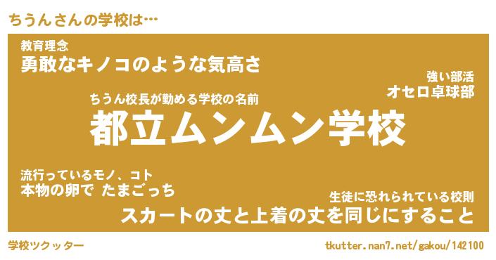| 男性向けラノベタイトル風あだ名 | 『ちうんの憂鬱』 |