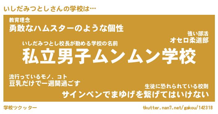 | 男性向けラノベタイトル風あだ名 | 『いしだみつとしの憂鬱』 |