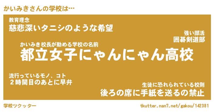 | 意味不明あだ名 | 『ペロリンかいみき』『永久保存かいみき』 |