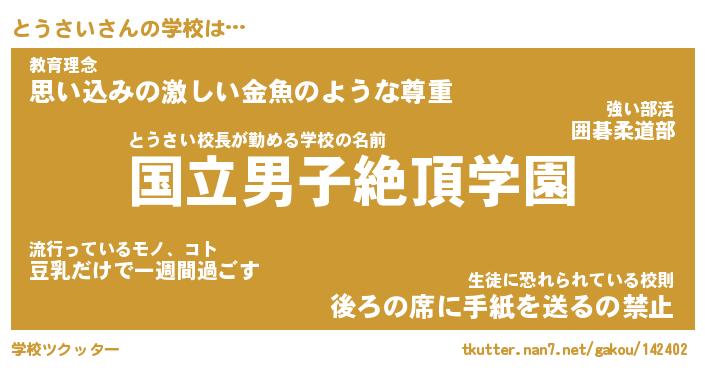 | 男性向けラノベタイトル風あだ名 | 『とうさいの憂鬱』 |