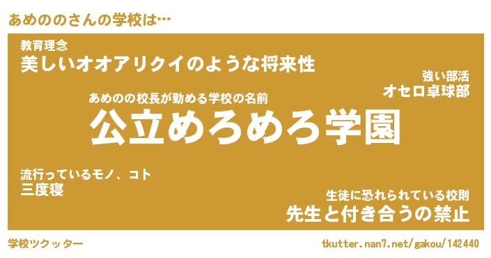 | ファンタジー風あだ名 | 『アメフェル』『エターナルアメノノー』 |