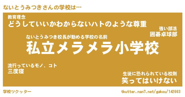 | 女子向けラノベタイトル風あだ名 | 『(仮)ないとうみつきのやんごとなき事情』 |