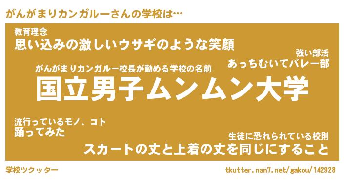 | 女子向けラノベタイトル風あだ名 | 『がんがまりカンガルー姫と円卓の騎士』 |