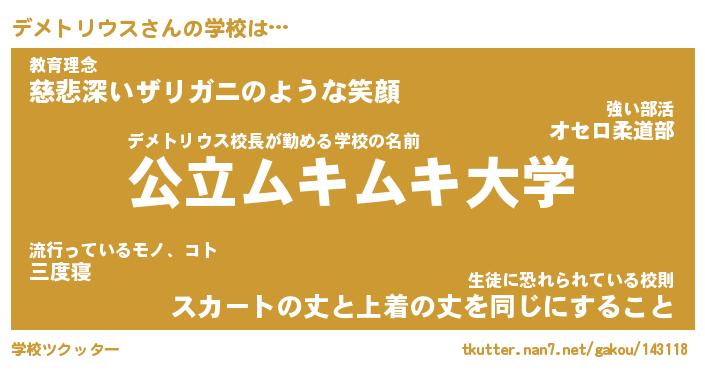 | 肩書あだ名 | 『デメトリウス社長』『デメトリウス教授』 |