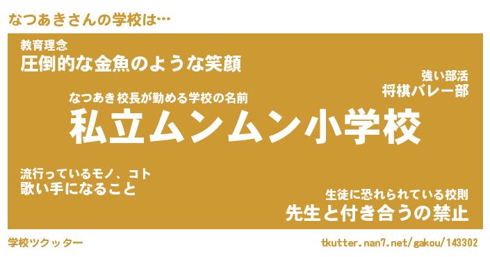 | 意味不明あだ名 | 『ペロリンなつあき』『永久保存なつあき』 |