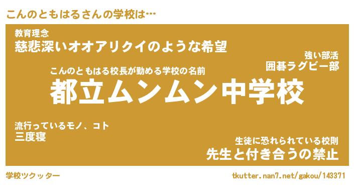 | 男性向けラノベタイトル風あだ名 | 『こんのともはるの憂鬱』 |