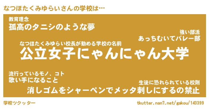| ヘコむあだ名 | 『なつもー』『つくし』『なつっ子』 |