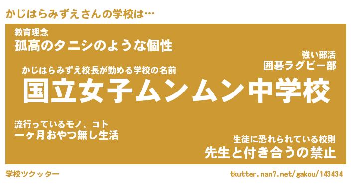 | 肩書あだ名 | 『かじはらみずえ店長』 |