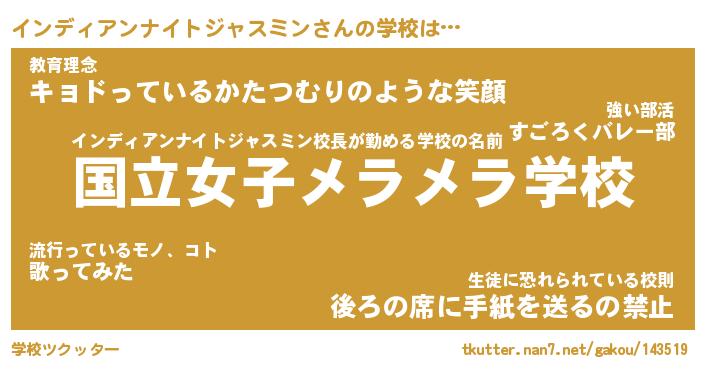 | ヒーロー風カッコイイあだ名 | 『スーパーインディアンナイトジャスミン』 |