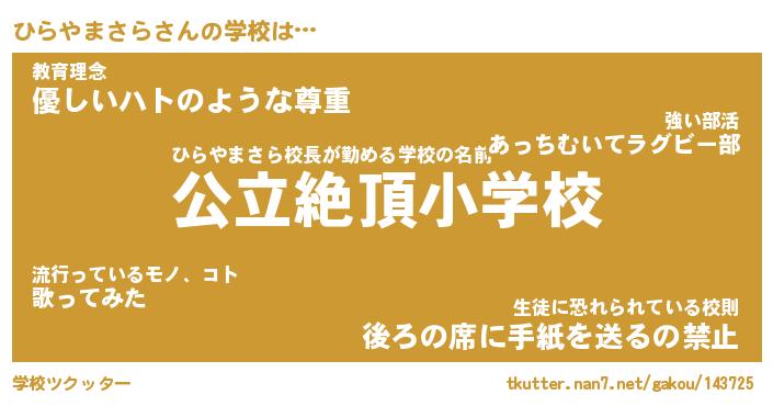 | ヒーロー風カッコイイあだ名 | 『スーパーヒラヤマサラ』『暗黒騎士ヒラ』 |