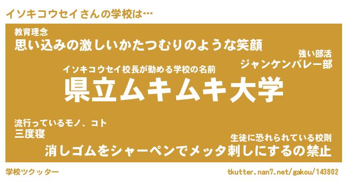 | 肩書あだ名 | 『イソキコウセイ社長』 |