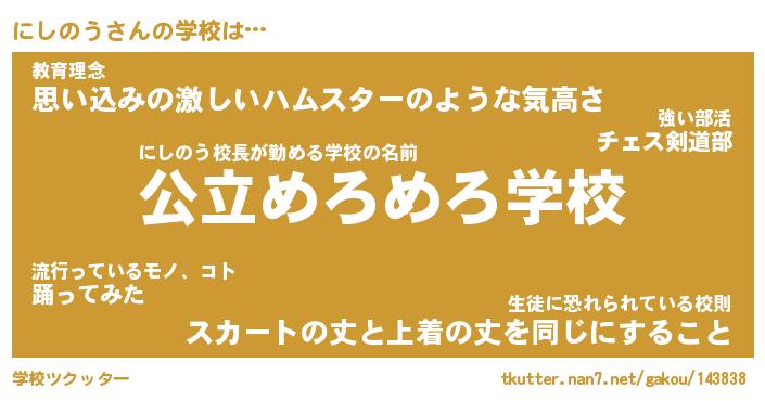 | 男性向けラノベタイトル風あだ名 | 『にしのうの憂鬱』 |