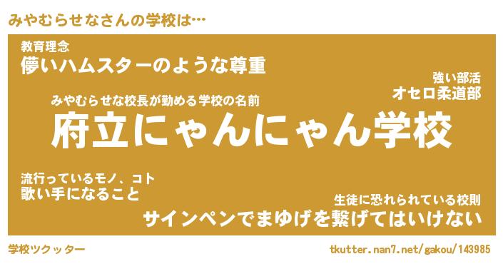 | 男性向けラノベタイトル風あだ名 | 『みやむらせなの憂鬱』 |