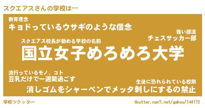 | 女子向けラノベタイトル風あだ名 | 『誰かこのスクエアスを説明してください! ~契約から始まるウェディング~』 |