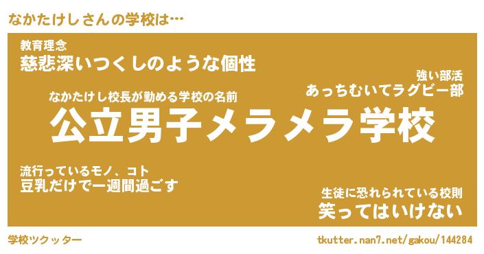 | 男性向けラノベタイトル風あだ名 | 『なかたけしの憂鬱』 |