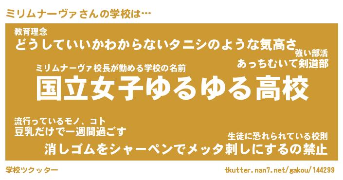 | 男性向けラノベタイトル風あだ名 | 『ミリムナーヴァアートオンライン』 |