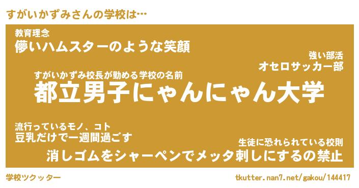| 男性向けラノベタイトル風あだ名 | 『スガイカズミアートオンライン』 |