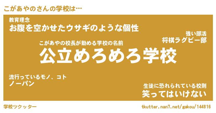 | 肩書あだ名 | 『こがあやの御曹司』『こがあやの校長』 |
