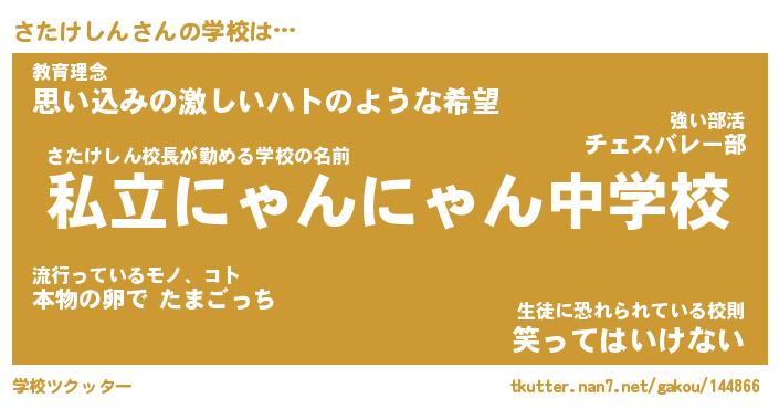 | ファンタジー風あだ名 | 『サタフェル』『エターナルサタケシンー』 |