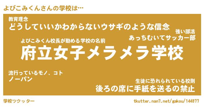 | ヘコむあだ名 | 『よびにー』『豆乳』『よびっ子』 |