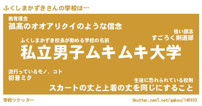 | 男性向けラノベタイトル風あだ名 | 『ふくしまかずきの憂鬱』 |