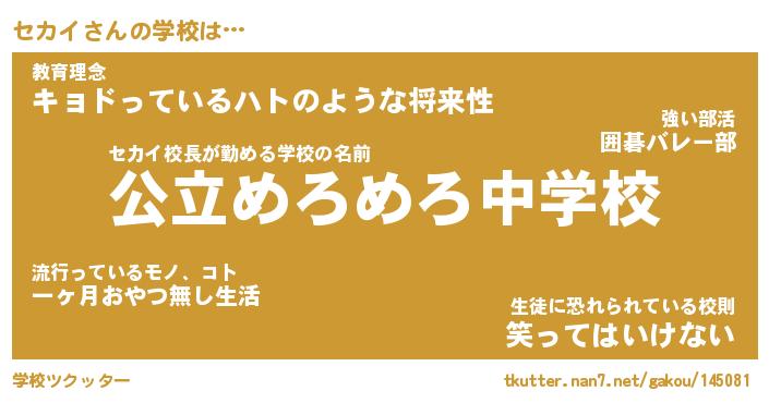 | ヒーロー風カッコイイあだ名 | 『スーパーセカイ』『ウルトラセカイマン』 |