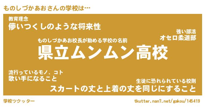 | 男性向けラノベタイトル風あだ名 | 『ものしづかあおの憂鬱』 |