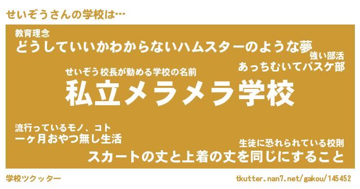 | ヒーロー風カッコイイあだ名 | 『スーパーセイゾウ』『炎刃騎士セイ』 |