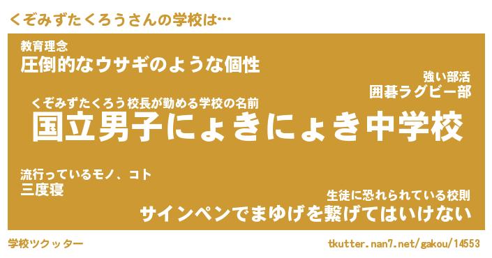 | 男性向けラノベタイトル風あだ名 | 『くぞみずたくろうの憂鬱』 |