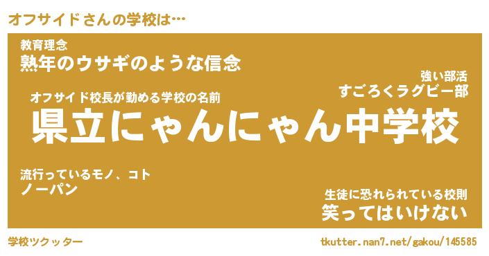 | ファンタジー風あだ名 | 『オフフェル』『エターナルオフサイドー』 |