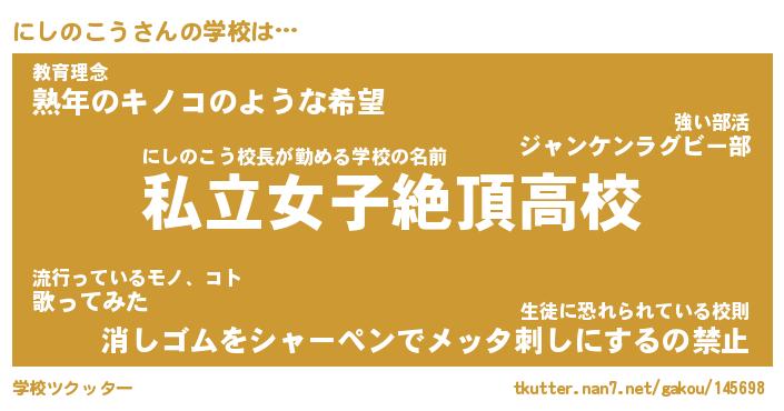 | ヘコむあだ名 | 『にしふぇ~』『つくし』『にしっ子』 |