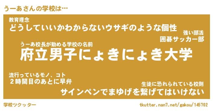 | 意味不明あだ名 | 『ペロリンうーあ』『うーあフォーエバー』 |