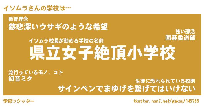 | 意味不明あだ名 | 『ペロリンイソムラ』『永久保存イソムラ』 |