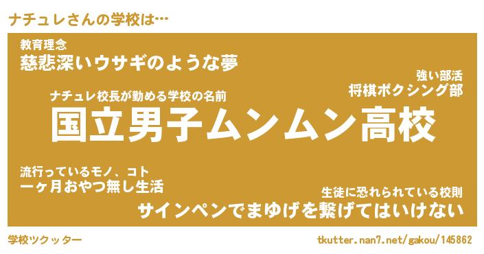 | ヒーロー風カッコイイあだ名 | 『スーパーナチュレ』『黄金騎士ナチ』 |
