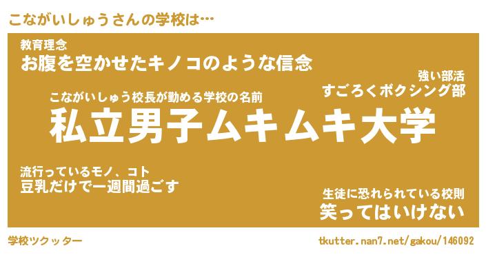 | 男性向けラノベタイトル風あだ名 | 『こながいしゅうの憂鬱』 |