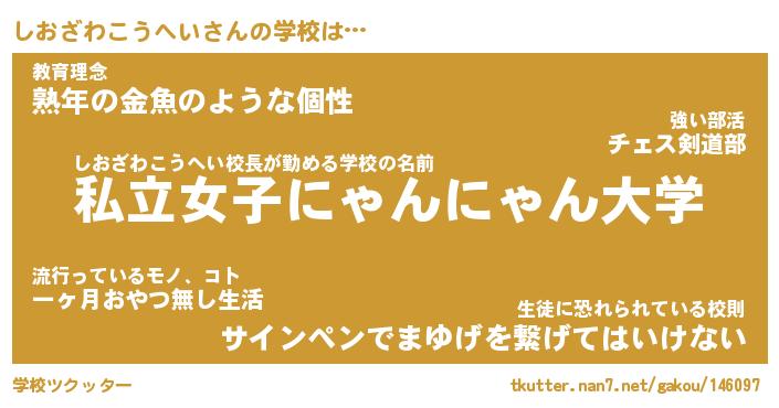 | 女子向けラノベタイトル風あだ名 | 『誰かこのしおざわこうへいを説明してください! ~契約から始まるウェディング~』 |