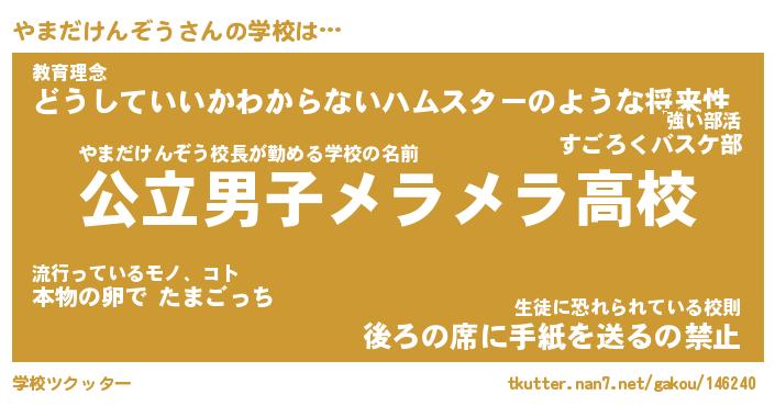 | 胡散臭い通販商品みたいなあだ名 | 『モテモテ間違いなしブレスレット…その名も「やまだけんぞう」』 |