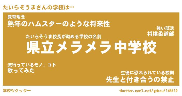 | 男性向けラノベタイトル風あだ名 | 『たいらそうまの憂鬱』 |