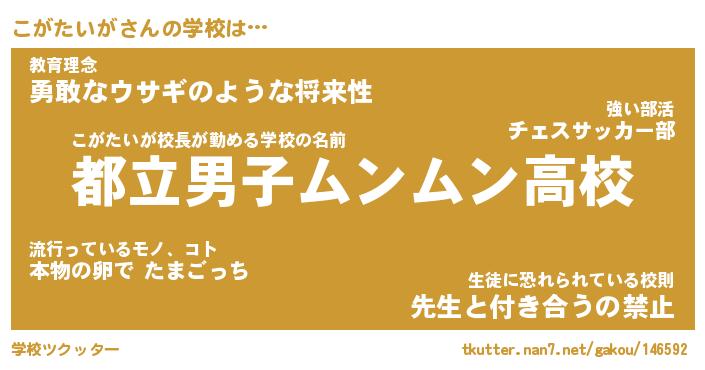 | 先生 | こがたいが先生が勤める学校名『道立もふもふ高校』 |