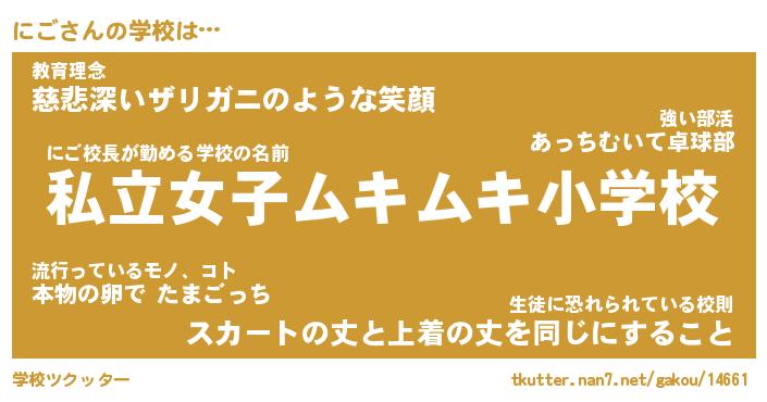 | ヒーロー風カッコイイあだ名 | 『スーパーニゴ』『ウルトラにごマン』 |